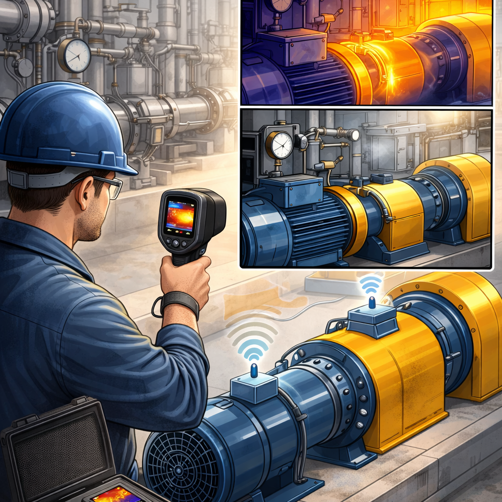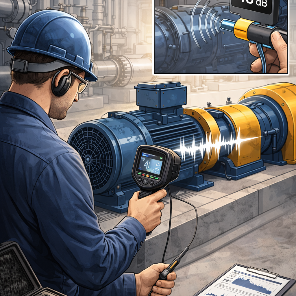 High-frequency acoustic analysis for early fault detection in bearings, steam traps, valves, compressed air systems, and electrical equipment.