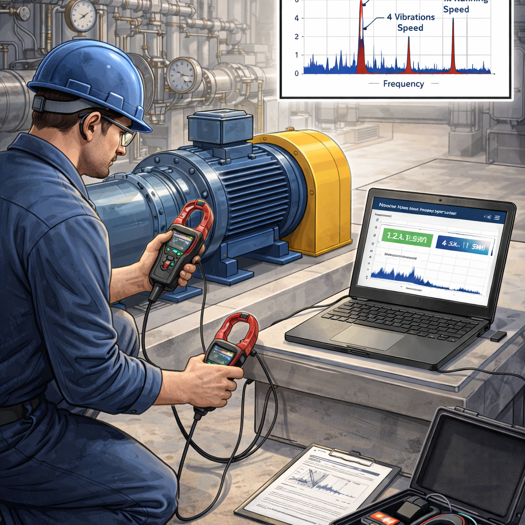 Comprehensive vibration measurements to identify imbalance, misalignment, looseness, and bearing defects in rotating equipment.